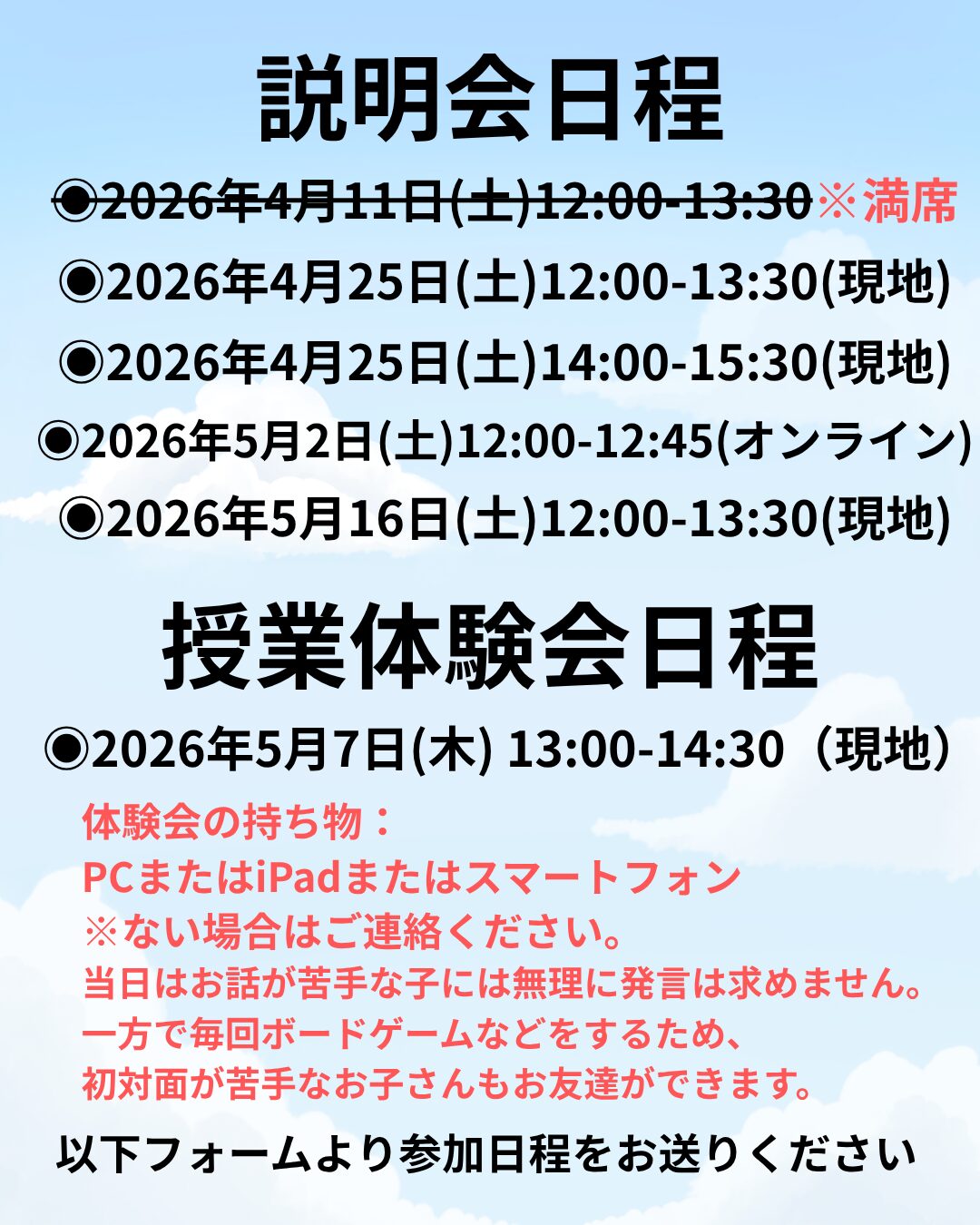 毎回定員に達するのが早いため、お早めにお申し込みください。