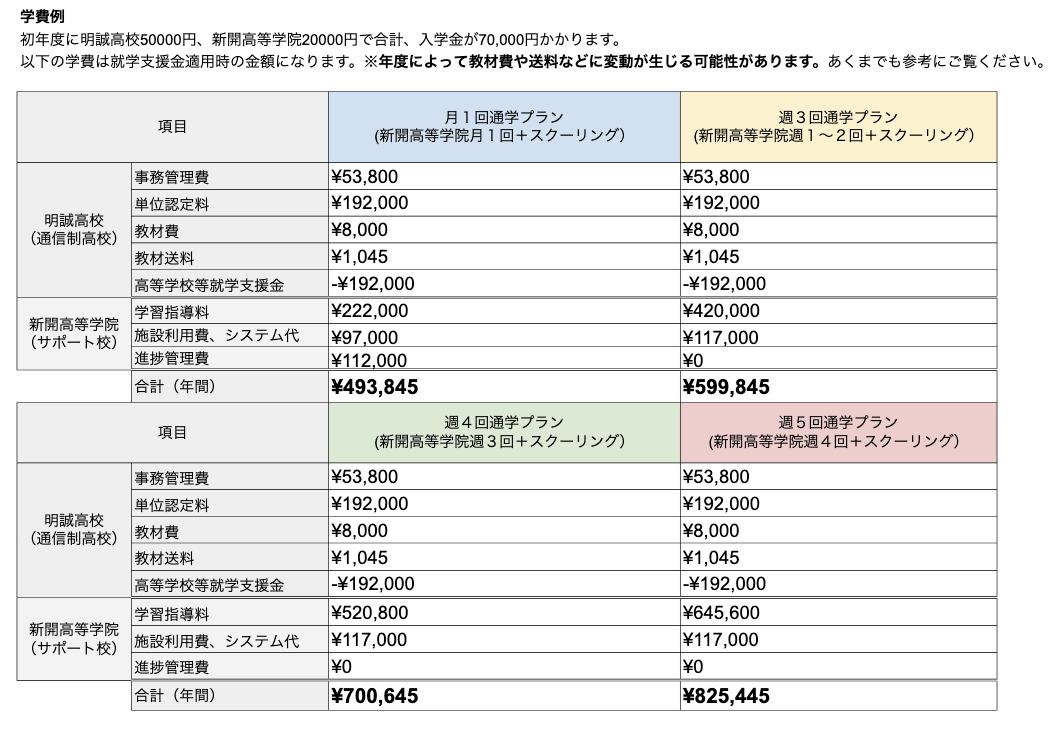 サポート校や通信制高校の通学コースは、学費が高いと思われがちですが、新開高等学院なら通信制高校とセットで相場の2/3以下でオフラインの校舎に通い、レポート課題の支援や就職、大学受験の支援などを受けることが可能です。
