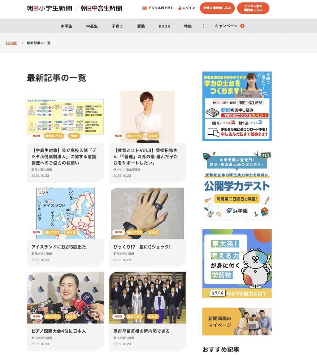 10/23、代表が朝日小学生、中高生新聞に掲載されました。