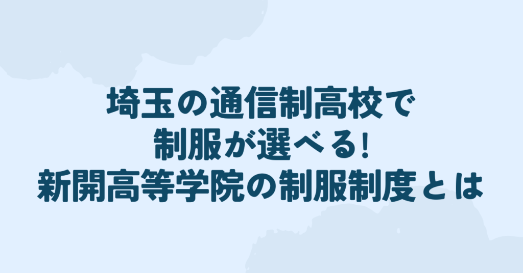 【通信制高校でも制服が着たい方へ】 埼玉県で通信制高校をお探しの皆さん、「通信制高校に通いながら制服を着たい」と思ったことはありませんか?新開高等学院では、生徒の皆さんの多様なニーズに応えるため、任意で制服を選択できる制度を設けています。 ...