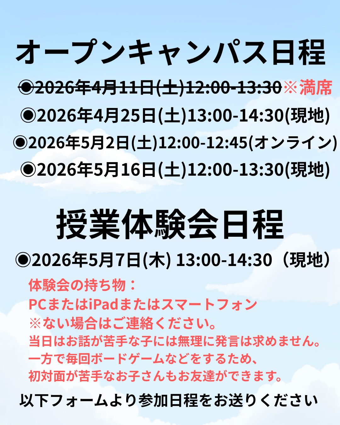 オープンキャンパスの日程が合わない場合、個別でご対応します。